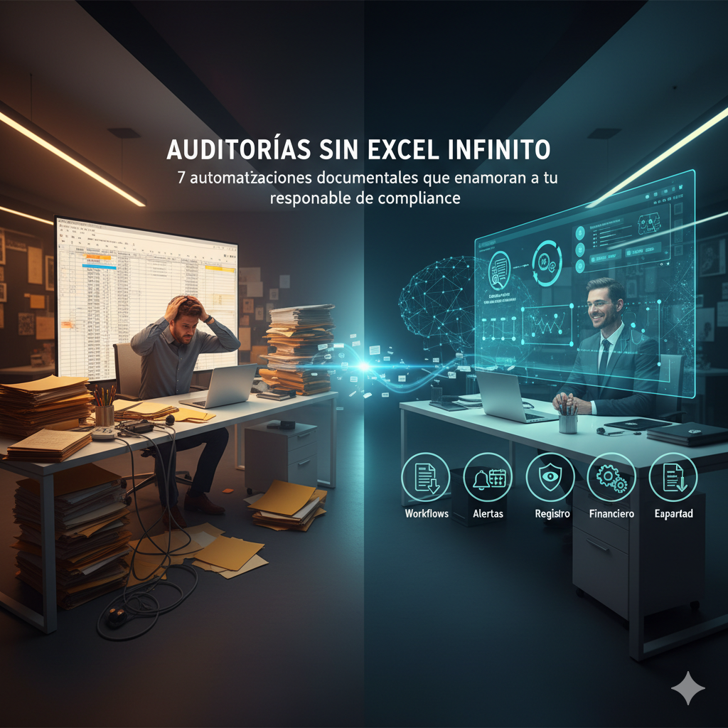 Cumplimiento normativo, Flujo de trabajo, Distribución, Envío por email, Firma calificada, Archivo legal, Trazabilidad.