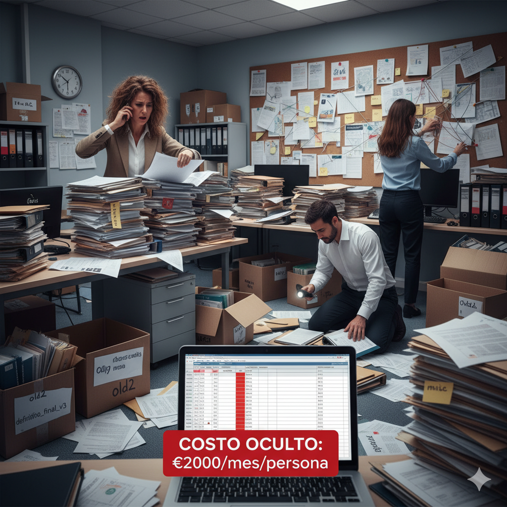 Si preguntas a tu equipo cuánto tiempo pasa cada día buscando documentos, la mayoría te dirá “solo unos minutos”. Pero si lo mides de verdad, la realidad suele ser brutal: correos reenviados, carpetas compartidas con 15 versiones, llamadas para saber “dónde está la última versión del contrato”. Al final, se esfuman fácilmente 1–2 horas por persona y por día.